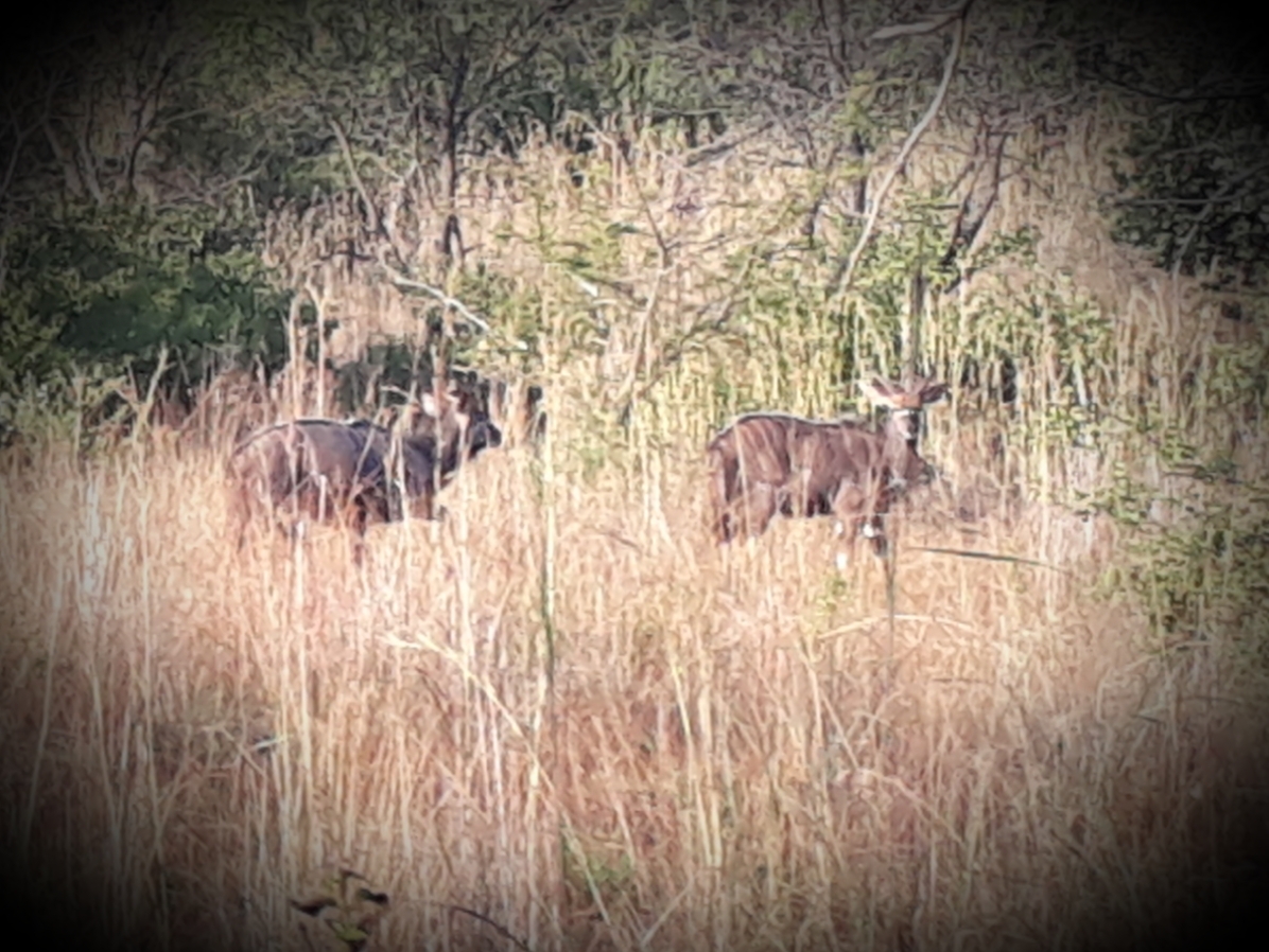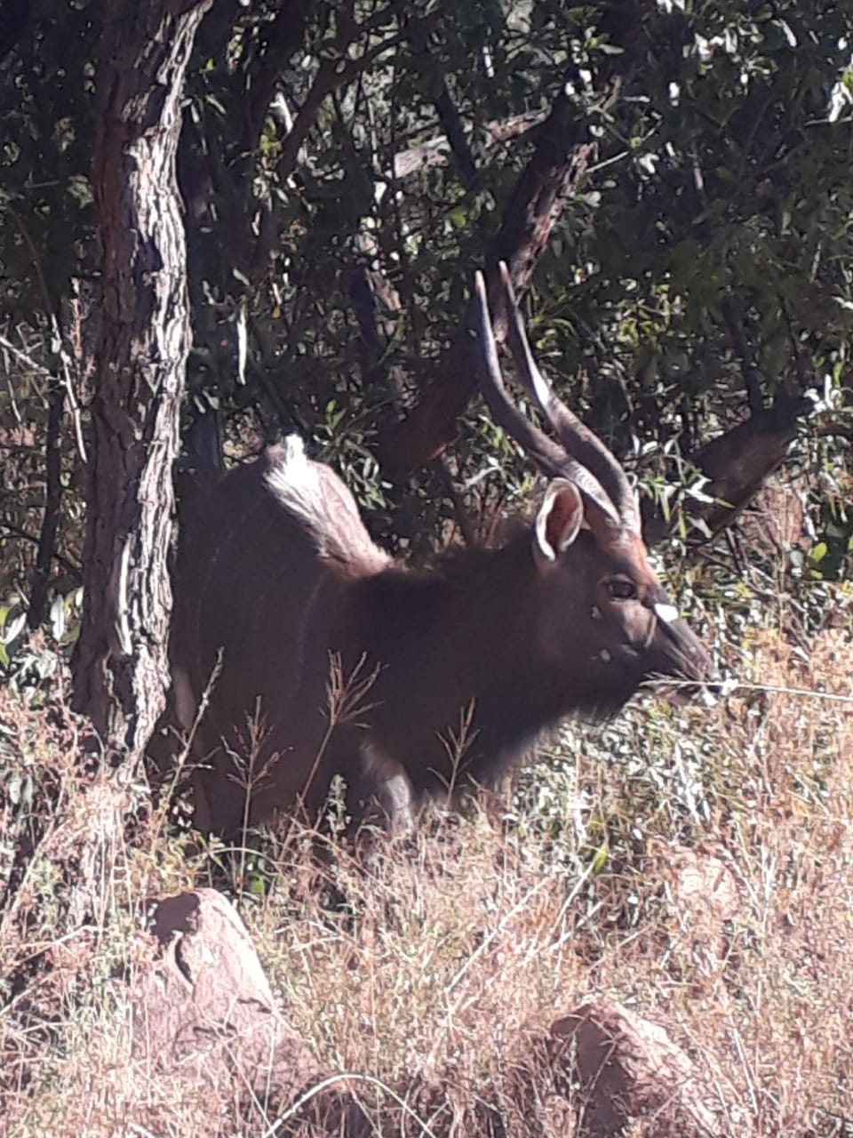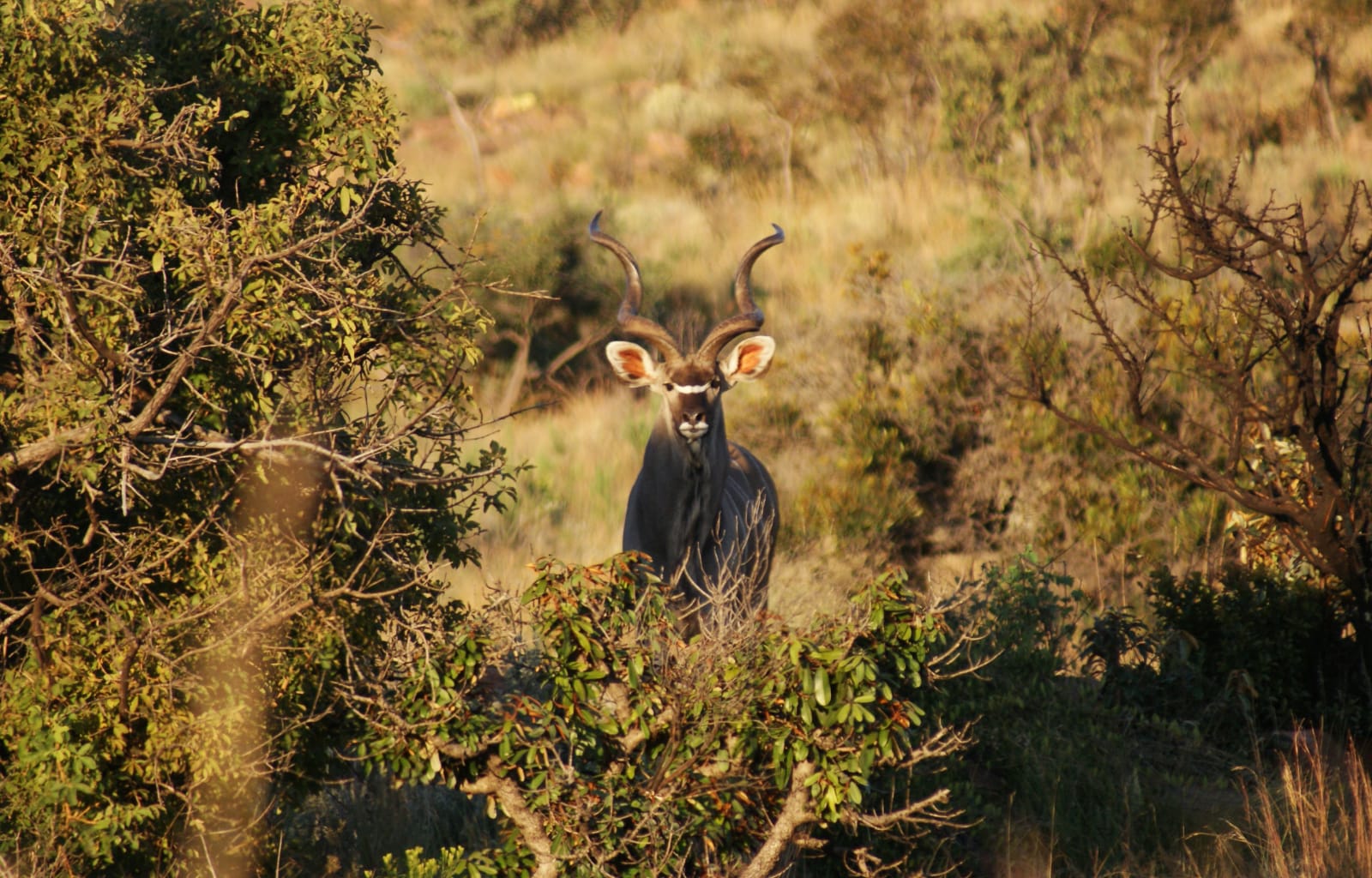 After stalking a herd and later moving into a hide to wait for them to move in, the bull eventually presented a good broadside shot for a clean kill.